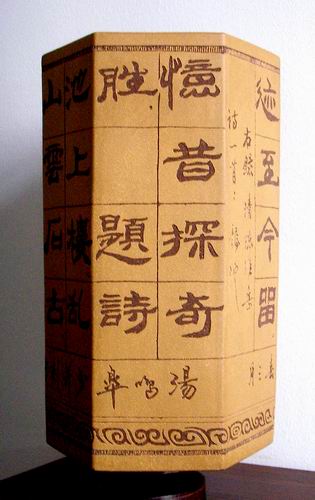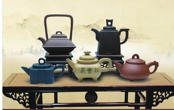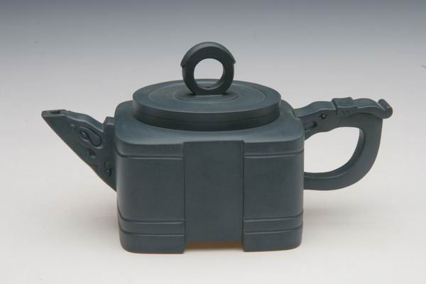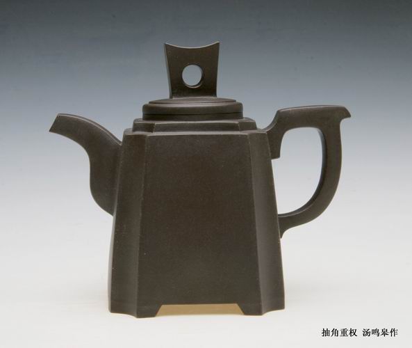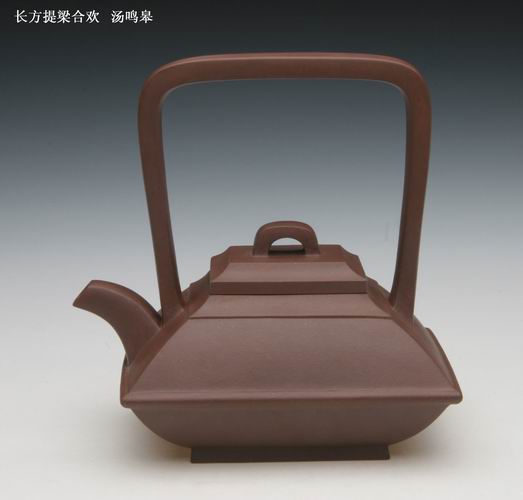 是从传统提梁合欢的造型意念得到启发,从两个半圆相合,变成两个长 方斗形相合。在造型上还吸收了青铜器"簠"的某些特点,壶腰线处理成"凸棱",底脚微微向外膨开,都可以看出 "簠"的形态痕迹。